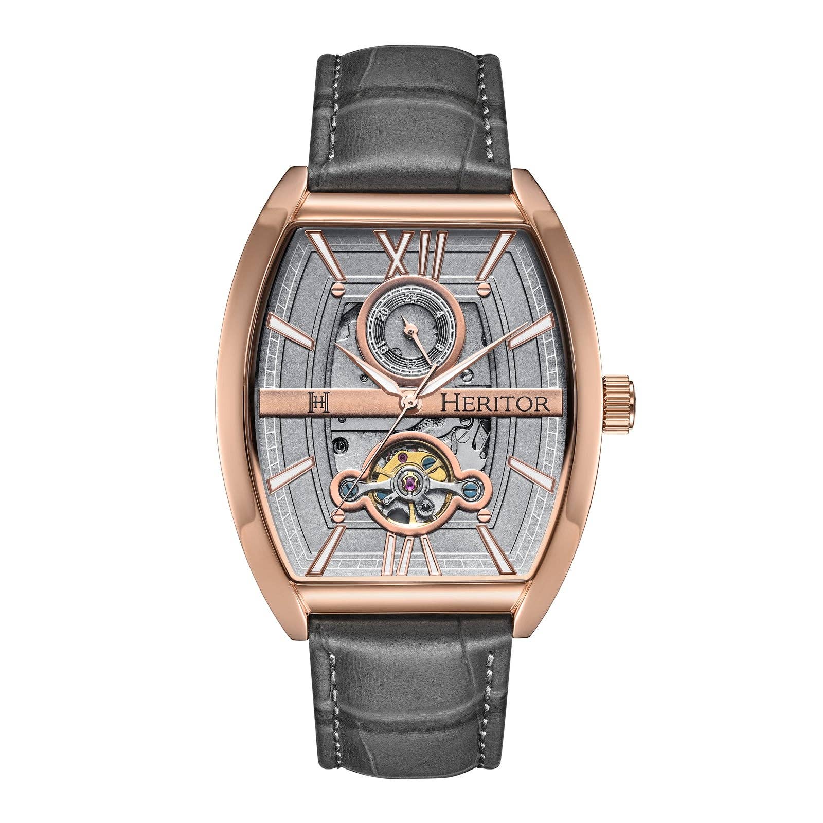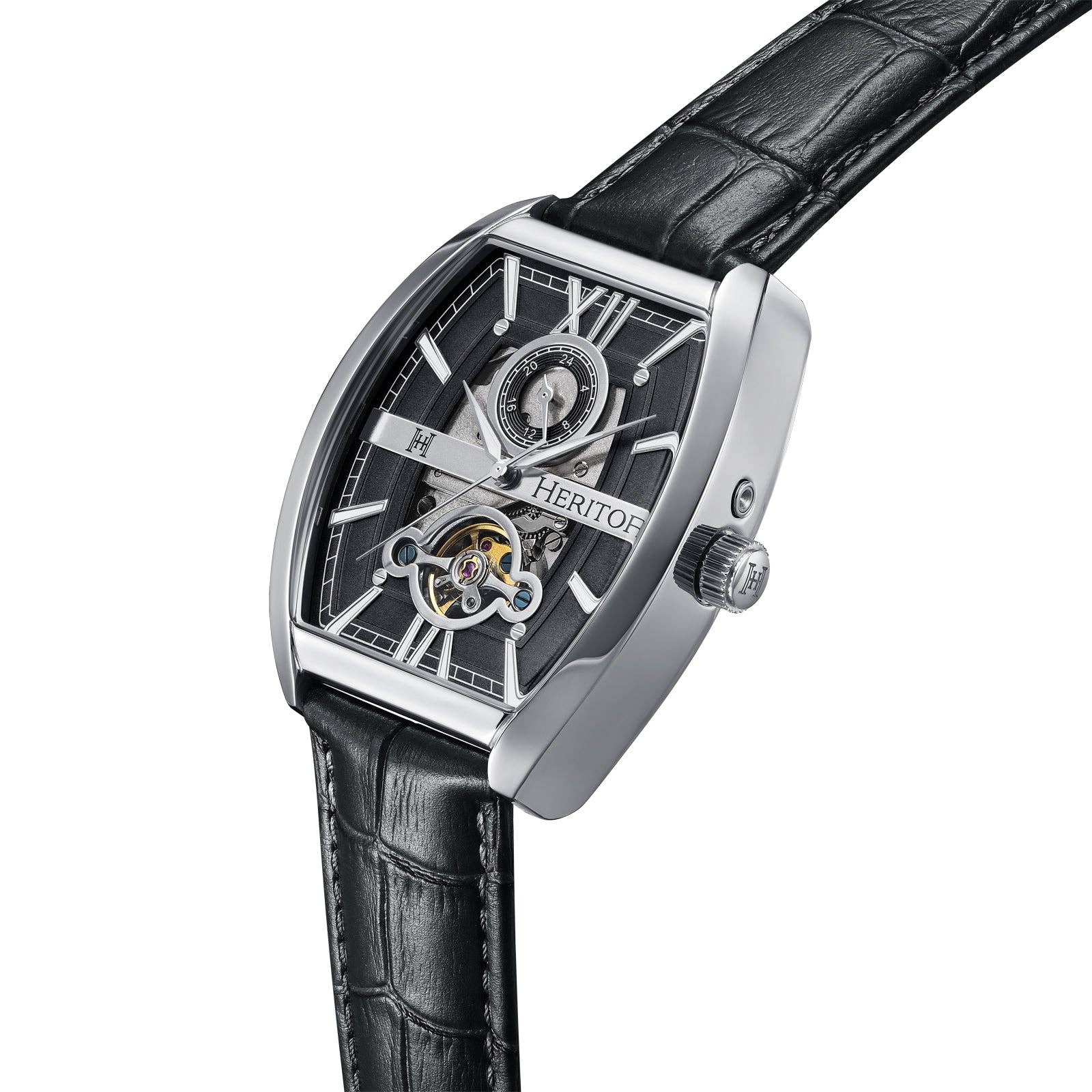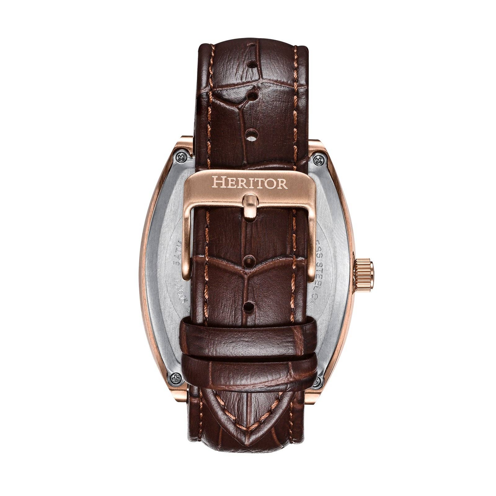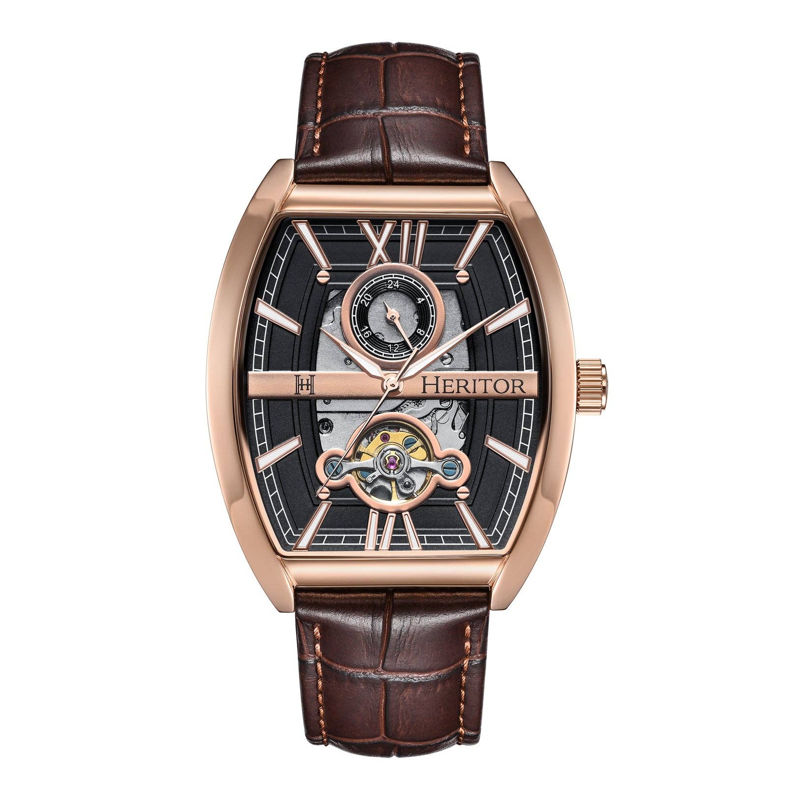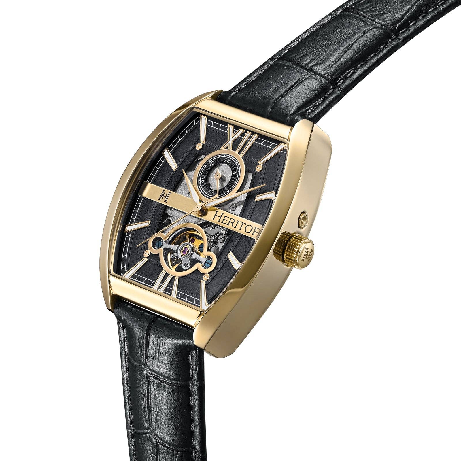 Heritor Automatic Masterson Semi-Skeleton Leather-Band Watch: Gold/Black
